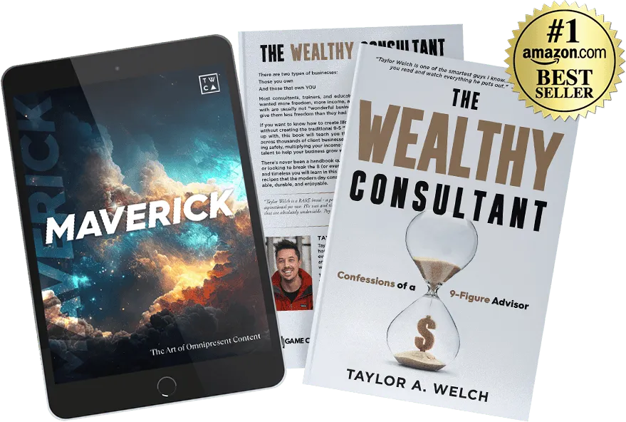 For a Limited Time - To celebrate the start of Spring, when you purchase The Wealthy Consultant book, in addition to your premium bonuses, you'll also receive Maverick - Our unique content creation training for becoming an "un-ignorable" authority in your market!